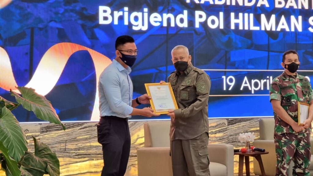Penghargaan berikan kepada Brigjen Pol Hilman sebagai Kabinda Provinsi Banten yang turut membantu pelaksanaan percepatan vaksinasi di provinsi Banten.
